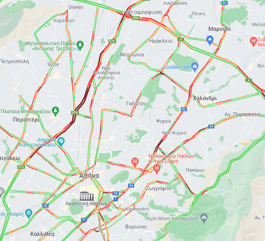 Σύμφωνα με την τροχαία Αττικής, αυξημένη είναι η κίνηση αυτή την ώρα στους εξής δρόμους: