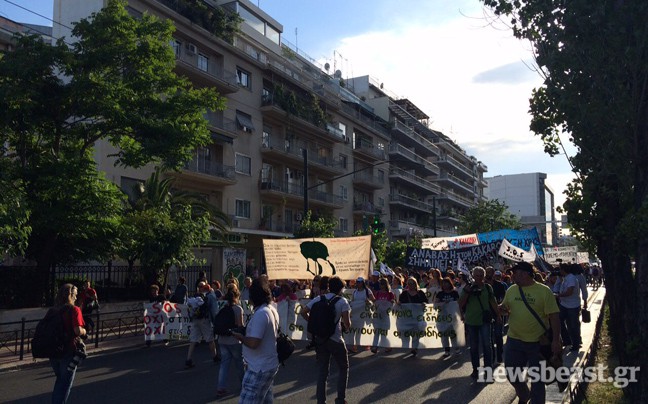 Οι συγκεντρωμένοι θέλουν να φτάσουν στο υπ. Περιβάλλοντος στη λεωφόρο Μεσογείων.