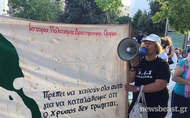 Πορεία πραγματοποιούν αυτήν την ώρα πολίτες που αντιτίθενται στην εξόρυξη χρυσού στις Σκουριές.
