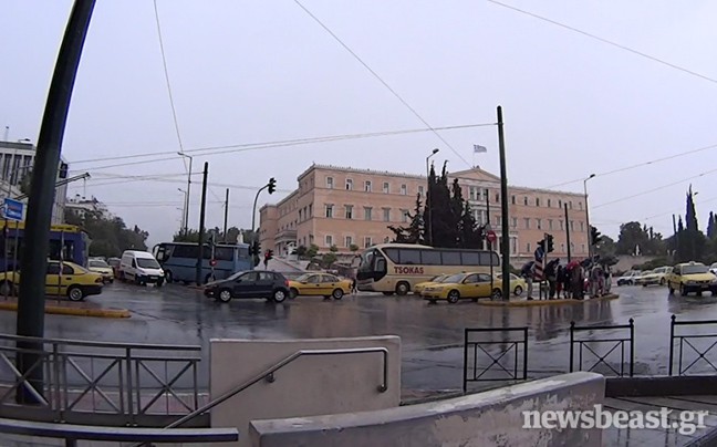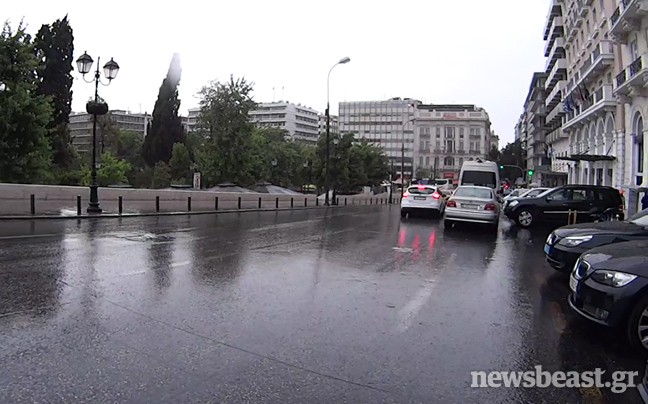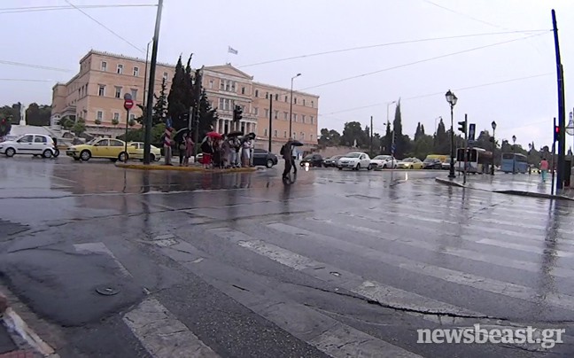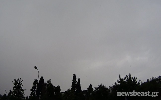 Στην Αθήνα ο ουρανός σκοτείνιασε, μη θυμίζοντας σε τίποτα τις ηλιόλουστες ημέρες του Ιουνίου που έχουμε συνηθίσει, ενώ στο κέντρο της πρωτεύουσας έκαναν την εμφάνισή τους και οι ομπρέλες από πολίτες που προσπάθησαν να προστατευτούν από τη βροχή.