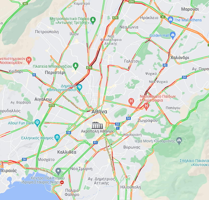 Ο χάρτης της Google με την κίνηση τώρα στους δρόμους