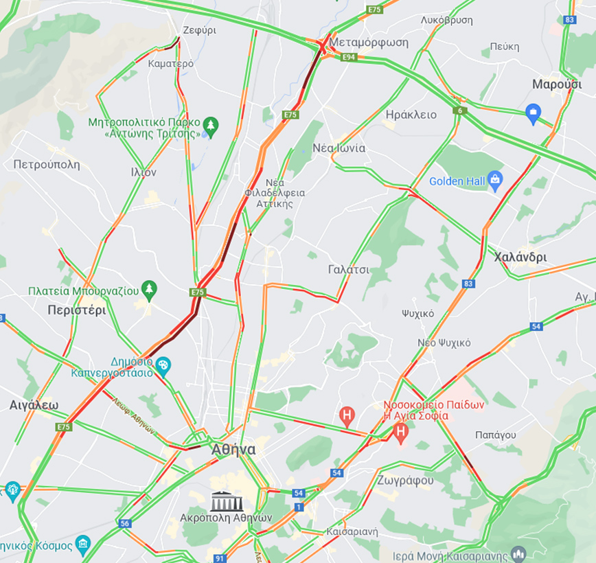 Δείτε τον χάρτη της Google με την κίνηση στους δρόμους: