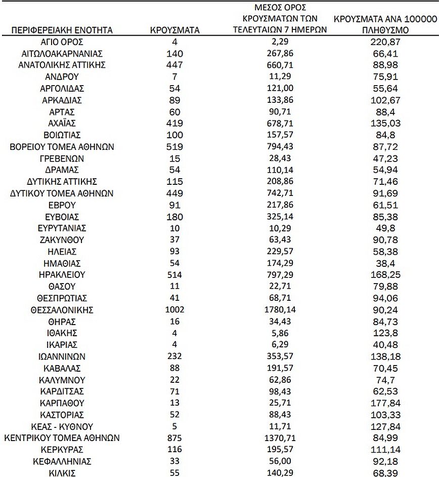 Ο ΕΟΔΥ ανακοίνωσε σήμερα (20/2) 9.596 νέα κρούσματα κορονοϊού. Στην Αττική το τελευταίο 24ωρο καταγράφηκαν 3.231 νέες μολύνσεις. Ακολουθεί η Θεσσαλονίκη με 1.002 νέα κρούσματα.