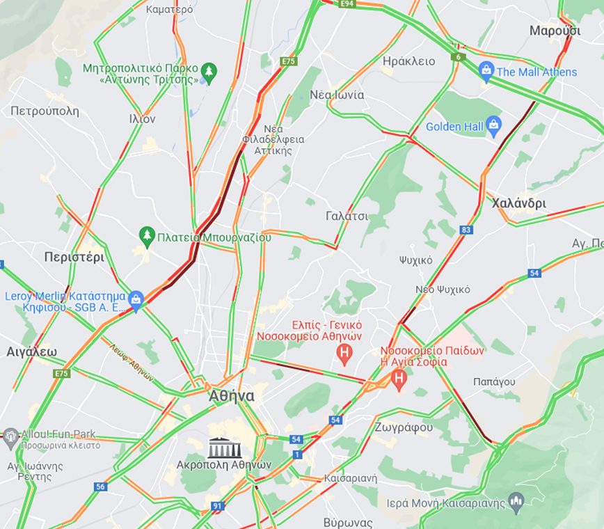 Σύμφωνα με την τροχαία Αττικής, αυτή την ώρα αυξημένη είναι η κίνηση στους εξής δρόμους: