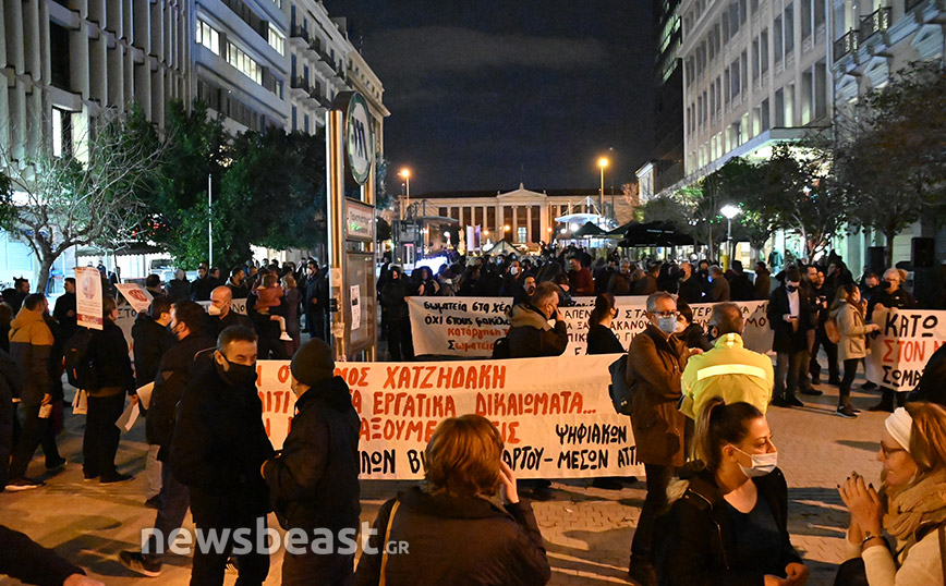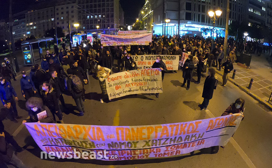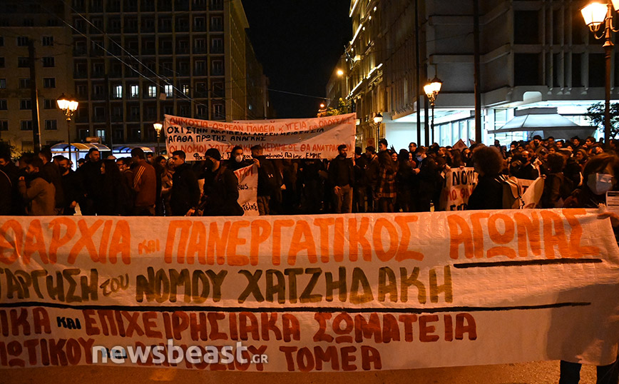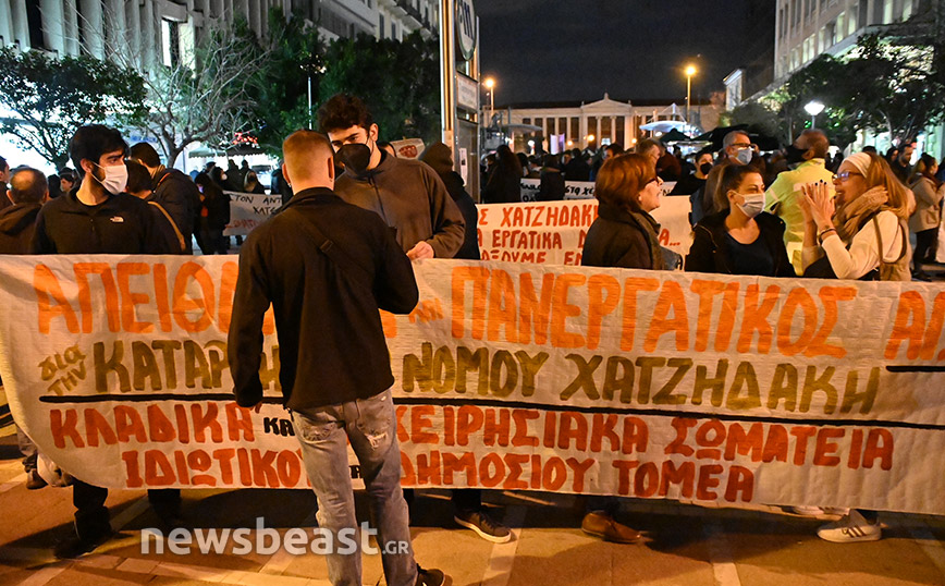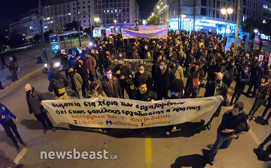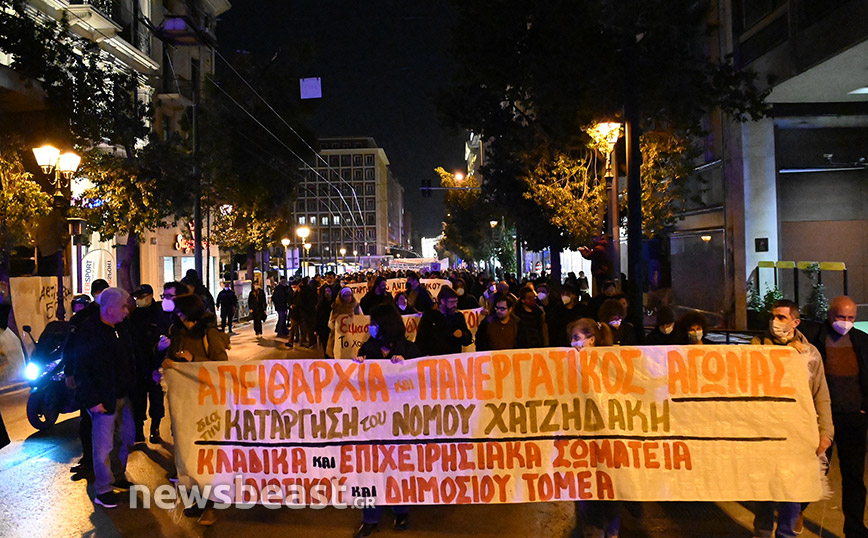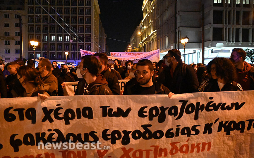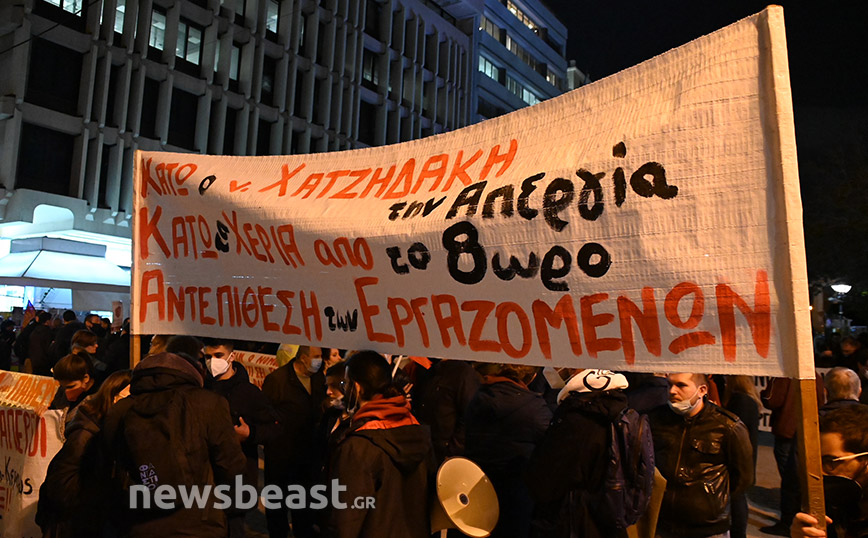 Οι διαδηλωτές ζητούν την κατάργηση του νόμου Χατζηδάκη, τη μείωση των ωρών εργασίας, μόνιμη και σταθερή δουλειά, αυξήσεις σε μισθούς και διατήρηση των συνδικαλιστικών δικαιωμάτων.