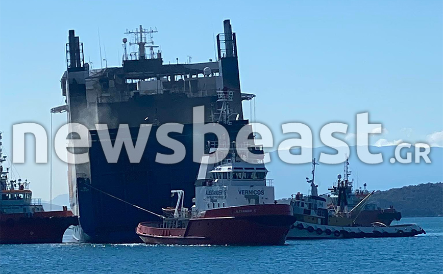 Επίσης έχουν σπεύσει τρία ρυμουλκά και πλοιάριο της πυροσβεστικής υπηρεσίας προκειμένου εάν υπάρξει κάποια αναζωπύρωση να μπορέσει να συνδράμει.
