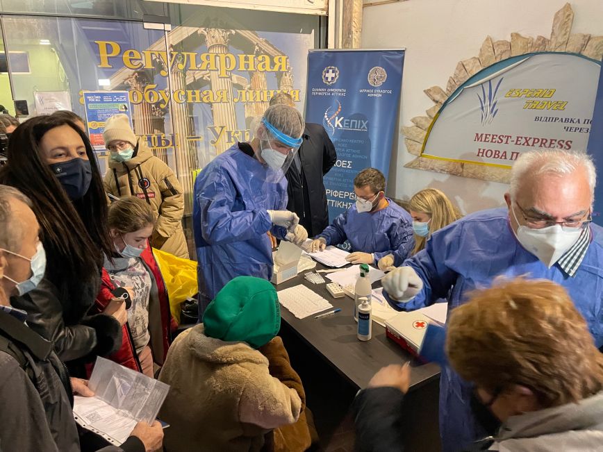 Κλιμάκιο της Περιφέρειας Αττικής, βρισκόταν στο σημείο και τους υποδέχθηκε ενώ στην συνέχεια υπεβλήθησαν σε τεστ covid.
