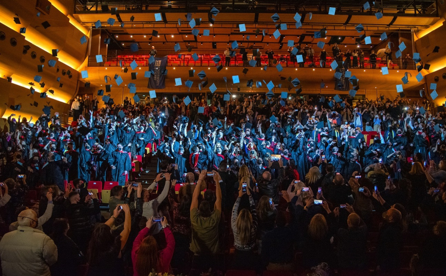 “Το μέλλον είναι πιο κοντά απ΄ όσο φαντάζεστε…κι έχει ήδη αρχίσει….!». Εμπνευσμένες από τη νέα καμπάνια επικοινωνίας του Mediterranean College, «The Future is Yours», ήταν οι Τελετές Αποφοίτησης του 1ου Πανεπιστημιακού Κολλεγίου στην Ελλάδα! Οι δύο λιτές (λόγω των υγειονομικών συνθηκών), αλλά εντυπωσιακές τελετές των Τάξεων του 2020 & 2021 πραγματοποιήθηκαν σε κλίμα συγκίνησης, την Τετάρτη 16 Φεβρουαρίου 2022 στο Μέγαρο Μουσικής Θεσσαλονίκης, παρουσία των αποφοίτων (με live streaming για το συγγενικό & φιλικό τους περιβάλλον) και την Τρίτη 22 Φεβρουαρίου 2022 στο Θέατρο του Κέντρου Πολιτισμού «Ελληνικός Κόσμος» στην Αθήνα, παρουσία των αποφοίτων & περιορισμένου αριθμού συγγενών & φίλων τους.