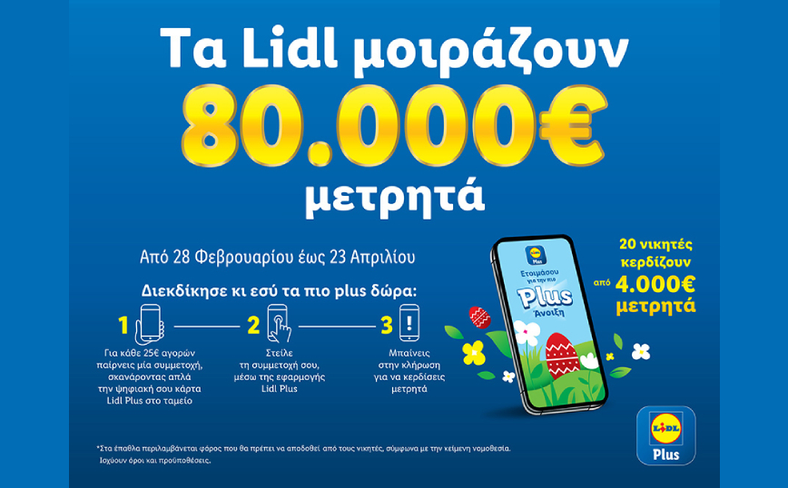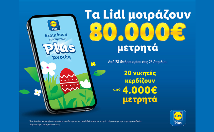 Το Lidl Plus επιστρέφει με έναν ακόμη μεγάλο διαγωνισμό που χαρίζει σε 20 τυχερούς χρήστες της εφαρμογής μετρητά συνολικής αξίας 80.000€!