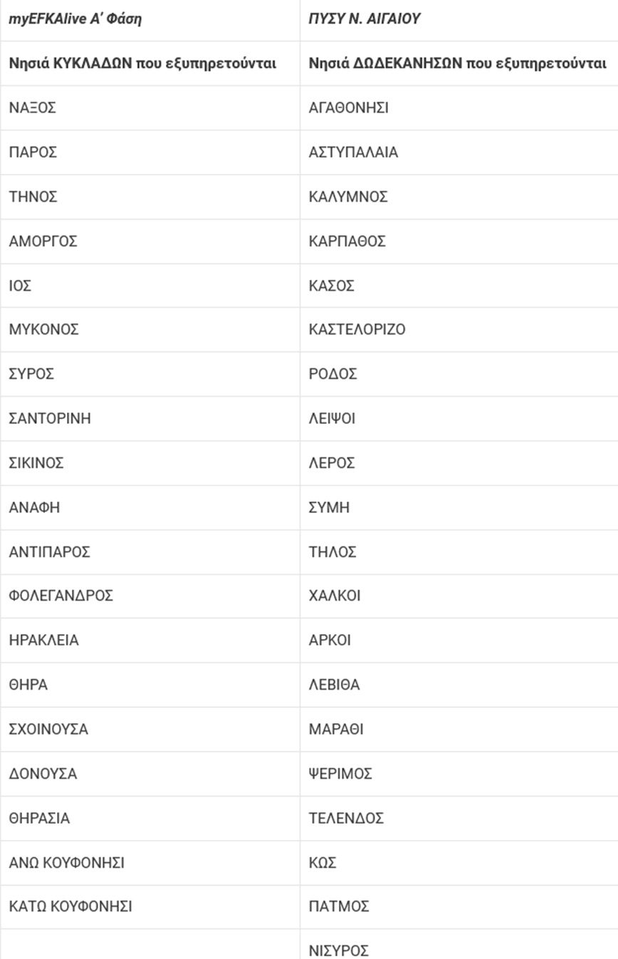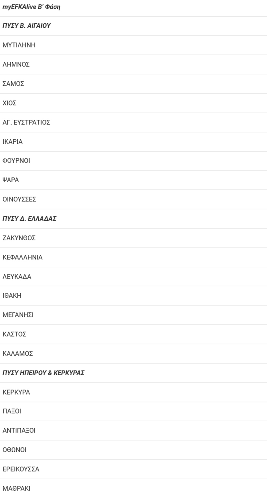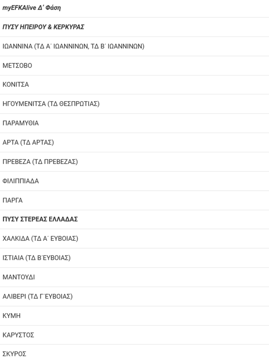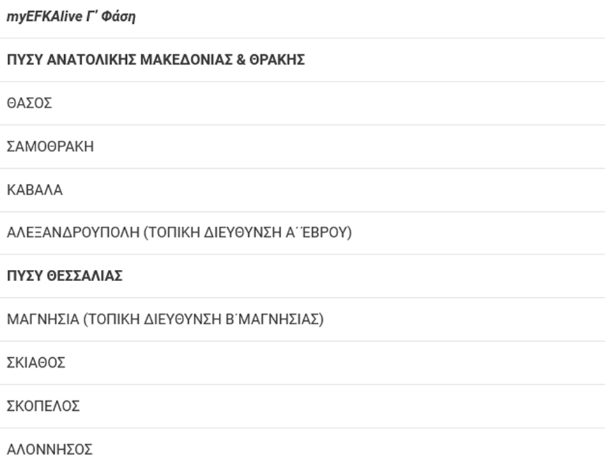 Οι περιοχές που εντάσσονται στο myEFKAlive: