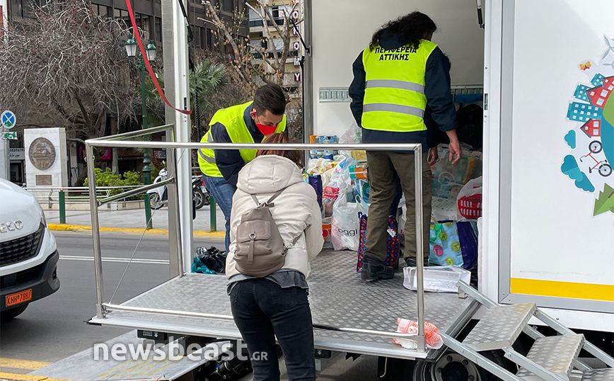 Ο δήμος Αθηναίων συγκεντρώνει ανθρωπιστική βοήθεια για την Ουκρανία συμμετέχοντας στη δράση «Όλοι Μαζί Μπορούμε» σε συνεργασία με την Περιφέρεια Αττικής και τον Ιατρικό Σύλλογο Αθηνών. Η συγκέντρωση των βασικών ειδών πρώτης ανάγκης γίνεται στην πλατεία Κοτζιά σήμερα Τρίτη (8/3) έως τις 18:00, σε ειδικά οχήματα της Περιφέρειας που βρίσκονται στο σημείο, όπως φαίνεται και από τις εικόνες του Newsbeast.