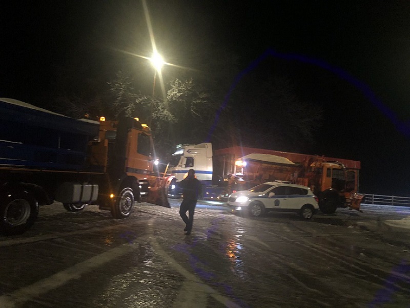 Όπως καταγράφει το trikalavoice.gr μηχανήματα της Π.Ε. Τρικάλων επιχειρούν στο οδικό δίκτυο της περιοχής ενώ με το που έπεσε η νύχτα απαγορεύτηκε η κίνηση στην ε.ο. Τρικάλων-Ιωαννίνων των φορτηγών, τα οποία σταματούν στη γέφυρα στο Μουργκάνι.