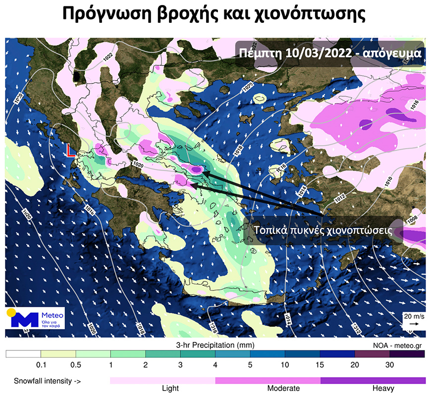 «Κακοκαιρία θα επικρατήσει στο μεγαλύτερο μέρος της χώρας την Πέμπτη 10 Μαρτίου 2022 με κύριο χαρακτηριστικό τις χιονοπτώσεις σε χαμηλά υψόμετρα και τις χαμηλές θερμοκρασίες.