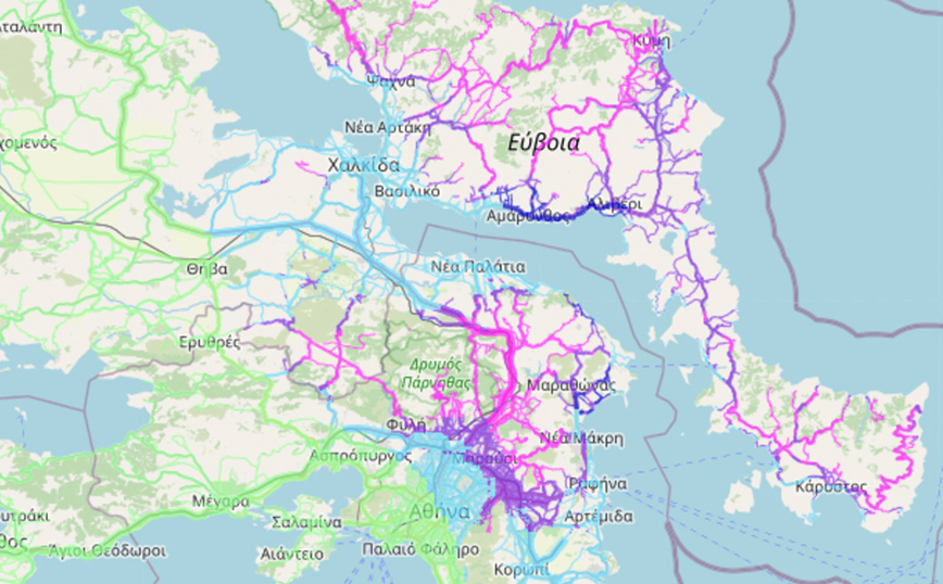 Ο επόμενος χάρτης από την εφαρμογή ROADS του Εθνικού Αστεροσκοπείου Αθηνών/meteo.gr δείχνει ότι την Πέμπτη 10/3 το όριο χιονοπτώσεων θα είναι περίπου στο ύψος της Αττικής Οδού.