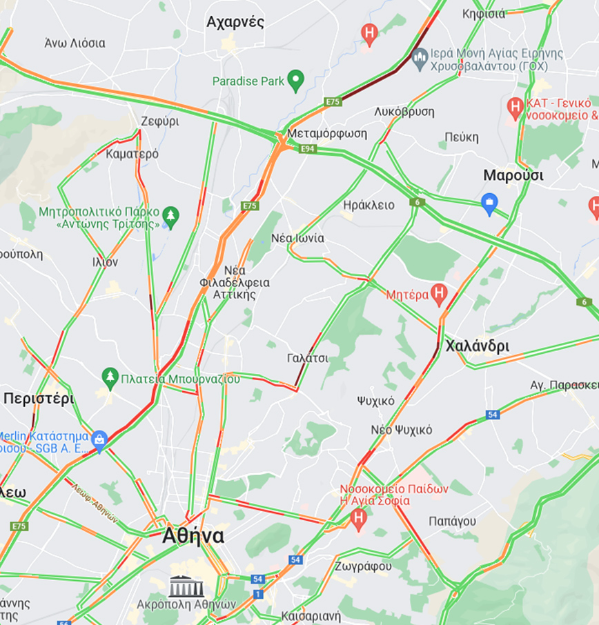 -Στην επαρχιακή οδό Εκάλης – Νέας Μάκρης, από το ύψος του “414” Στρατιωτικού Νοσοκομείου, μέχρι το πάρκο Ανατολής,