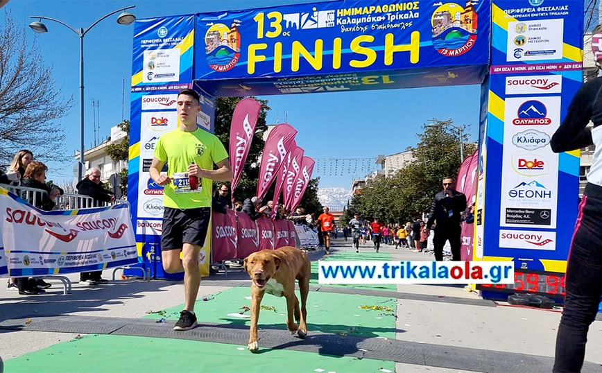 Είκοσι ένα χιλιόμετρα έτρεξε σε ημιμαραθώνιο ένας σκύλος, ξεκινώντας από την Καλαμπάκα και τερματίζοντας στα Τρίκαλα. Όπως κατέγραψε το trikalaola.gr ο σκύλος είναι αδέσποτος και δεν ακολουθούσε κανέναν.