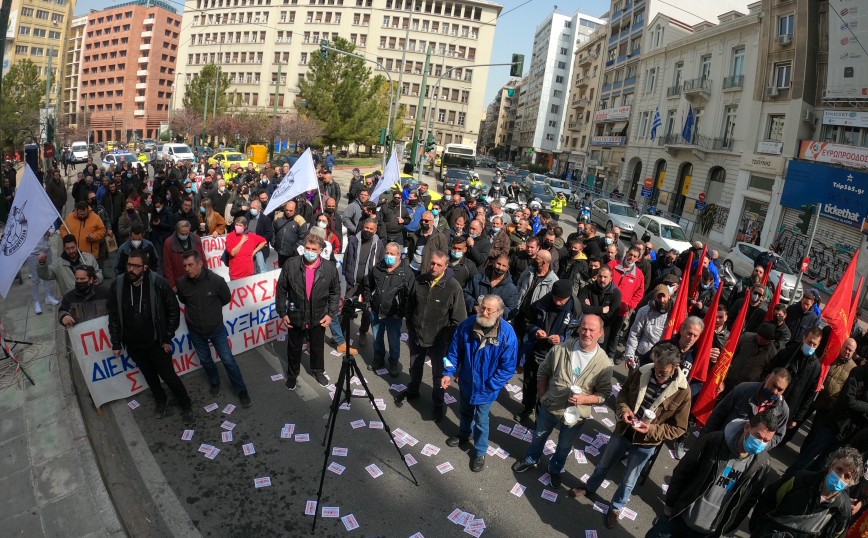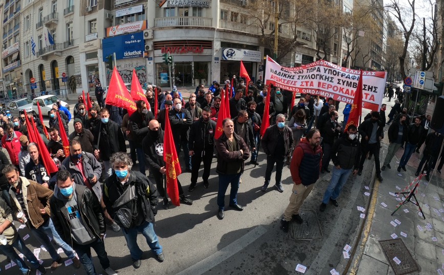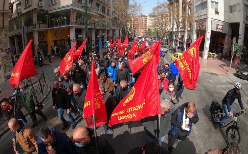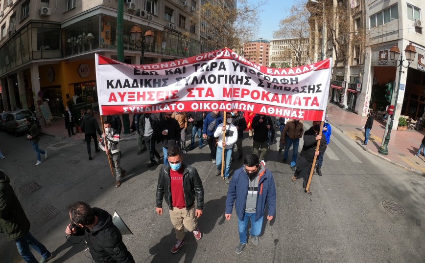 Συγκέντρωση διαμαρτυρίας στην πλατεία Κάνιγγος και πορεία πραγματοποίησαν οι οικοδόμοι, οι εργαζόμενοι και οι άνεργοι στα συναφή επαγγέλματα, καθώς βρίσκονται σε 24ωρη πανελλαδική πανοικοδομική απεργία για σήμερα Τετάρτη (16/3).