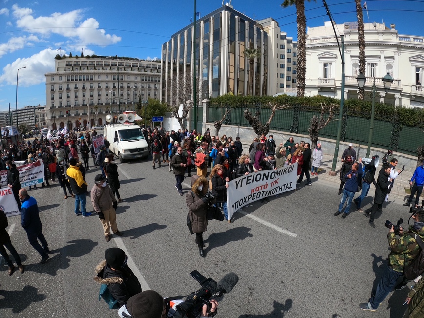 Στους δρόμους της Αθήνας έχουν βγει από το πρωί οι υγειονομικοί οι οποίοι μετά από κάλεσμα της ΠΟΕΔΗΝ πραγματοποίησαν νωρίτερα συγκέντρωση στην πλατεία Κλαυθμώνος και κατά τις 13:30 έφτασαν έξω από τη Βουλή.