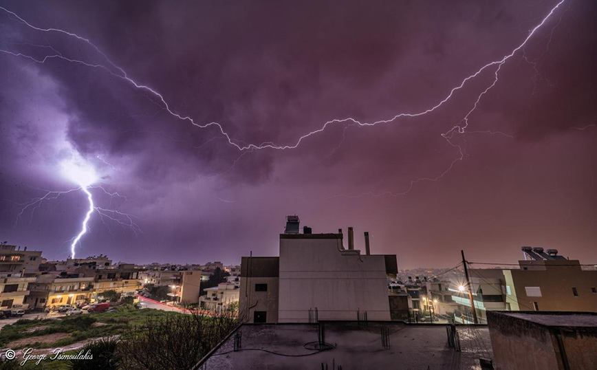 Κακοκαιρία έπληξε τη νύχτα το μεγαλύτερο μέρος της Κρήτης. Ακόμα και μέσα στο Ηράκλειο υπήρξε χιονόστρωση, ενώ οι αστραπές και οι κεραυνοί έκαναν τη νύχτα μέρα.