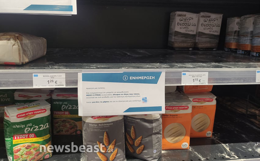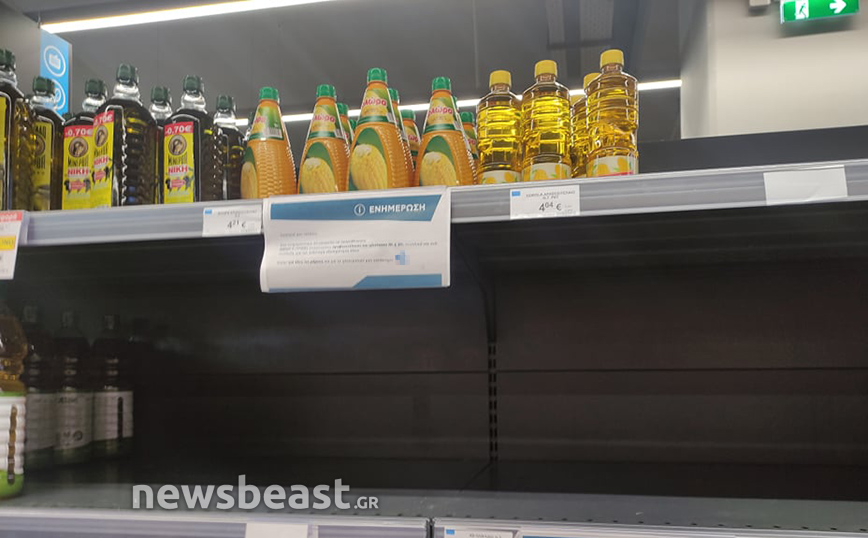 Η εικόνα που έδινε το συγκεκριμένο σούπερ μάρκετ λοιπόν ήταν η εξής: πολύς συνωστισμός, μεγάλες ουρές αλλά και ράφια που είχαν σχεδόν αδειάσει ήδη από τις 12.00, από αλεύρια, ηλιέλαια και αραβοσιτέλαια.