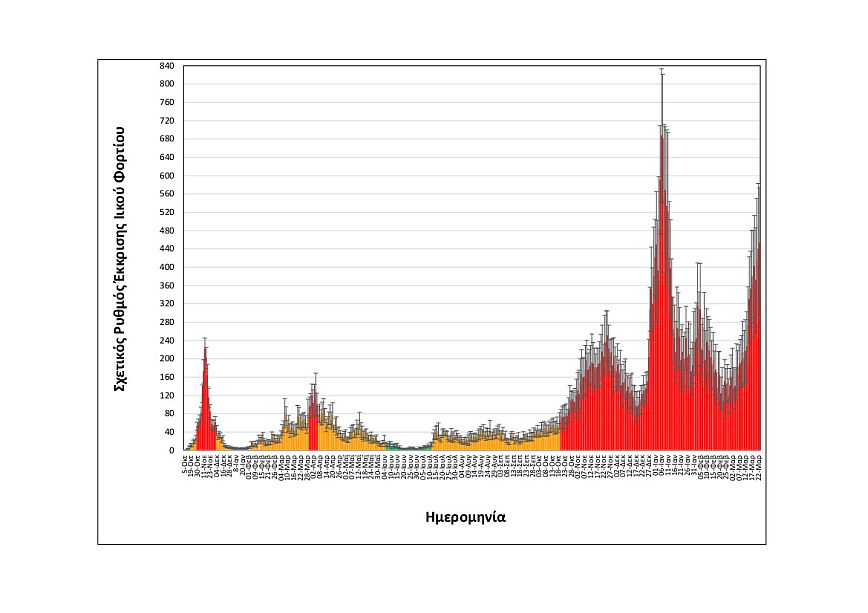Συγκεκριμένα, στα δείγματα που λαμβάνονται καθημερινά στην είσοδο της Εγκατάστασης Επεξεργασίας Λυμάτων Θεσσαλονίκης, αναφορικά με τις εξορθολογισμένες τιμές σχετικής έκκρισης ιικού φορτίου, η μέση τιμή των δύο πιο πρόσφατων μετρήσεων, δηλαδή της Τρίτης 22/03/2022 και της Τετάρτης 23/03/2022 είναι: