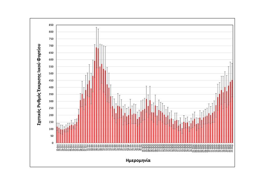 -Οριακά αυξημένη (+14%) σε σχέση με τη μέση τιμή των δύο αμέσως προηγούμενων μετρήσεων της Κυριακής 20/03/2022 και της Δευτέρας 21/03/2022.