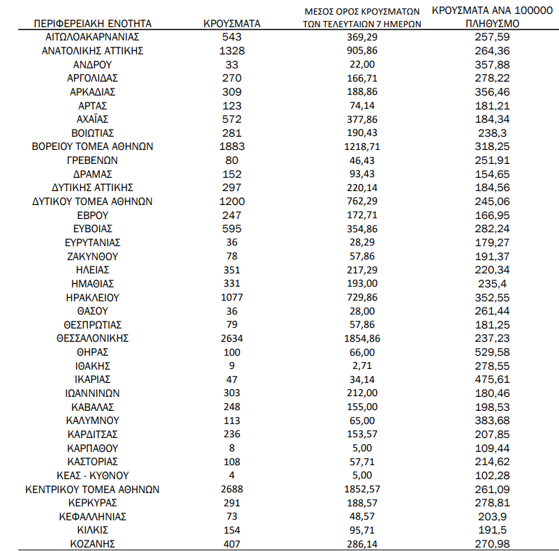 Συγκεκριμένα η περιοχή της Αττικής έχει 10.058 νέα κρούσματα κορονοϊού και η κατανομή έχει ως εξής: