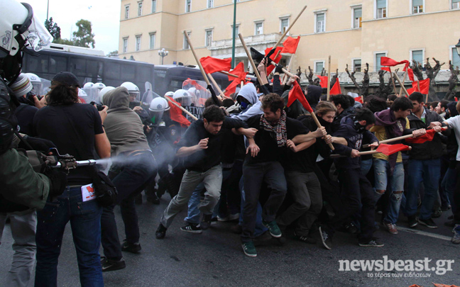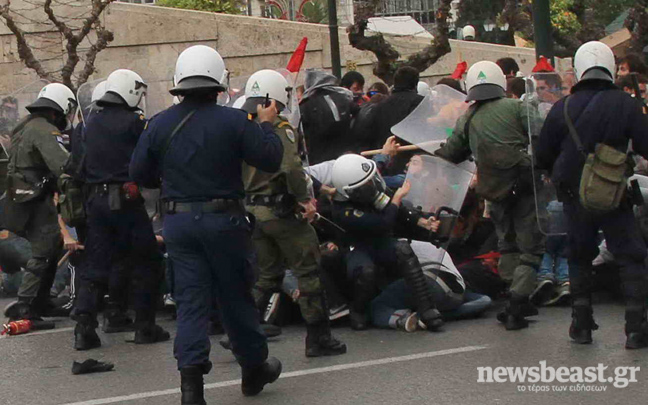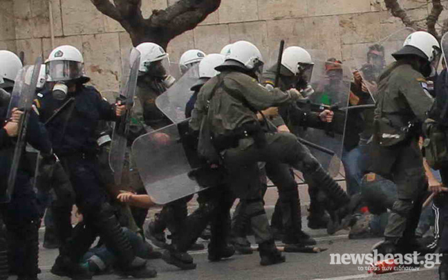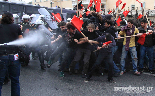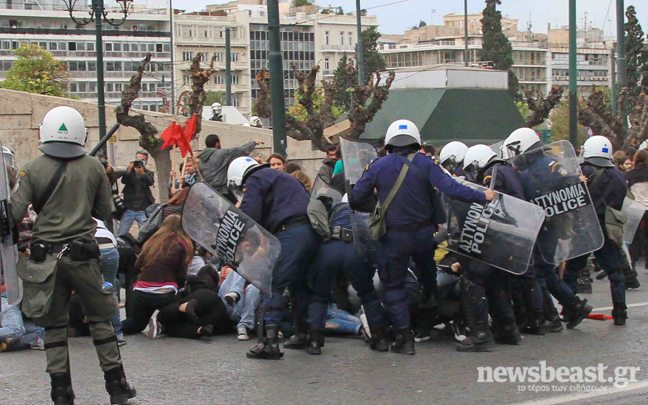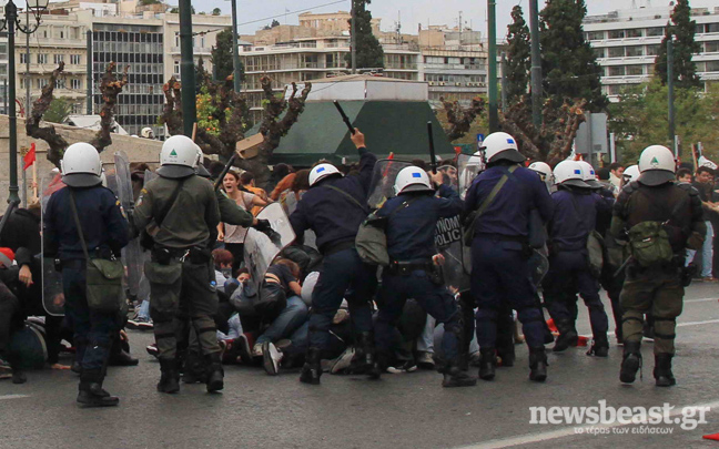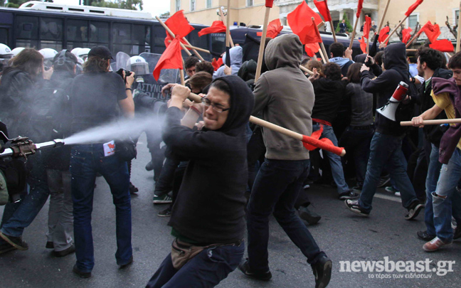 Οι φοιτητές επιχείρησαν να σπάσουν το μπλόκο των αστυνομικών, που παρακολουθούν στενά την πορεία, και τα ΜΑΤ απάντησαν με εκτεταμένη ρίψη χημικών και δακρυγόνων. Από τα επεισόδια τραυματίστηκε σοβαρά ένας φοιτητής.