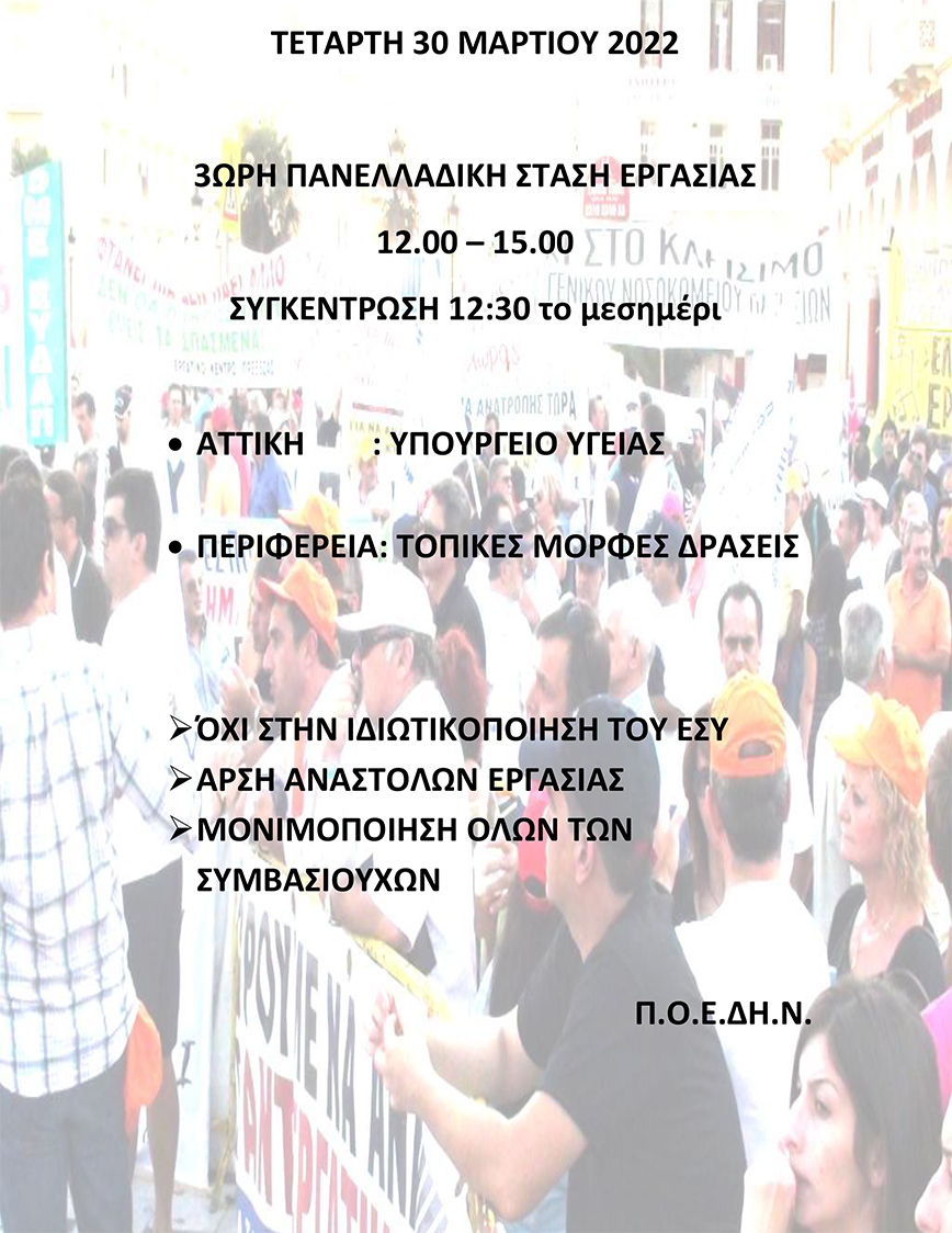 H Ομοσπονδία λέει «όχι στην ιδιωτικοποίηση του ΕΣΥ, άρση αναστολών εργασίας και μονιμοποίηση όλων των συμβασιούχων».