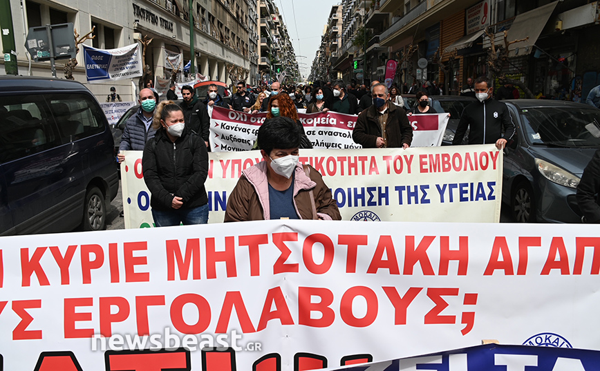 Κινητοποιήσεις στο κέντρο της Αθήνας πραγματοποιούν από τις 12:30 υγειονομικοί αντιδρώντας στο νομοσχέδιο για την υγεία που συζητείται στη Βουλή δείχνοντας την αντίδρασή τους στον υποχρεωτικό εμβολιασμό και στις αναστολές εργασίας.