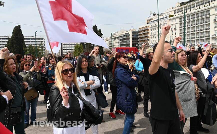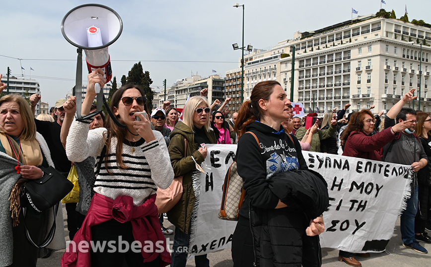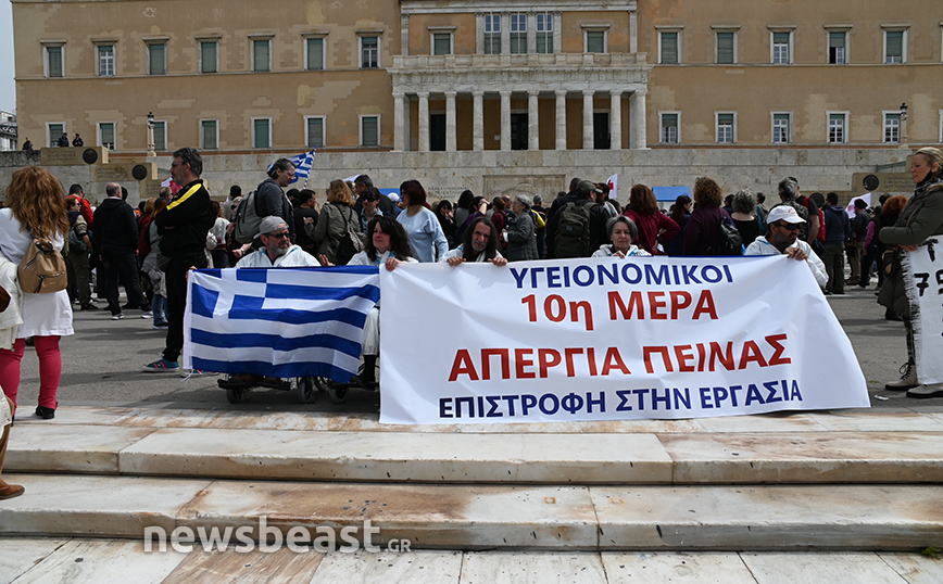 Η ΠΟΕΔΗΝ έδωσε ραντεβού στις 12:30 έξω από το υπουργείο Υγείας και στη συνέχεια τα μέλη της ξεκίνησαν πορεία που κατέληξε στη Βουλή.