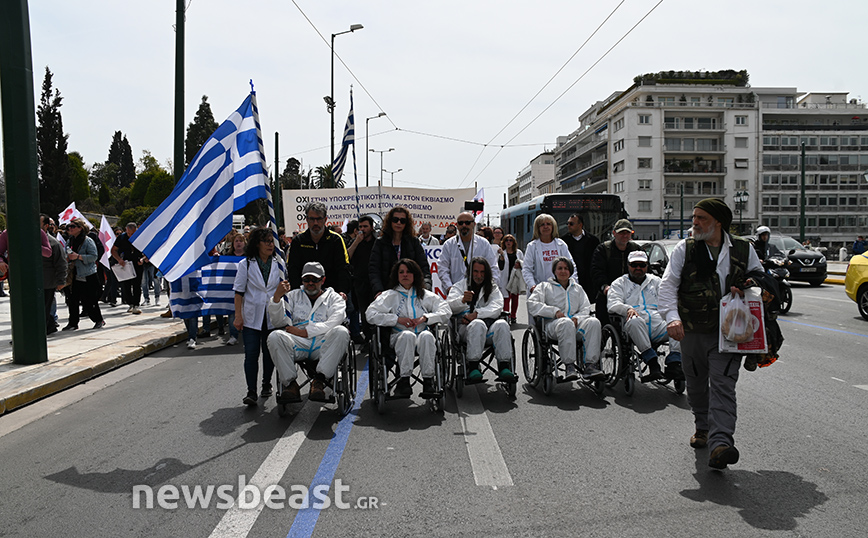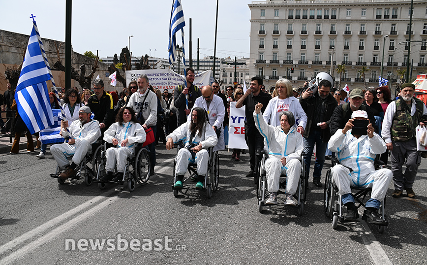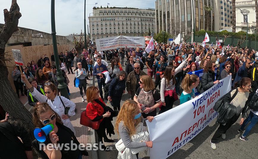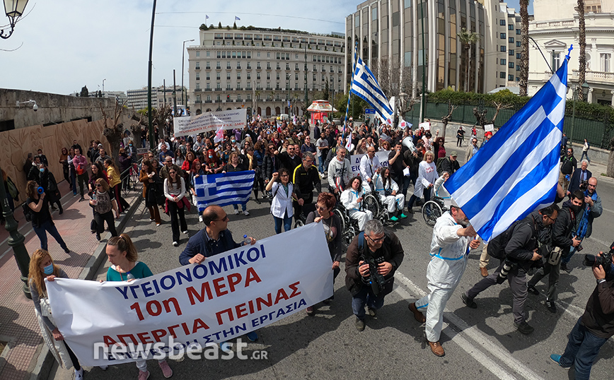 Η ΠΟΕΔΗΝ έδωσε ραντεβού στις 12:30 έξω από το υπουργείο Υγείας και στη συνέχεια τα μέλη της ξεκίνησαν πορεία που κατέληξε γύρω στις 13:30 στη Βουλή.