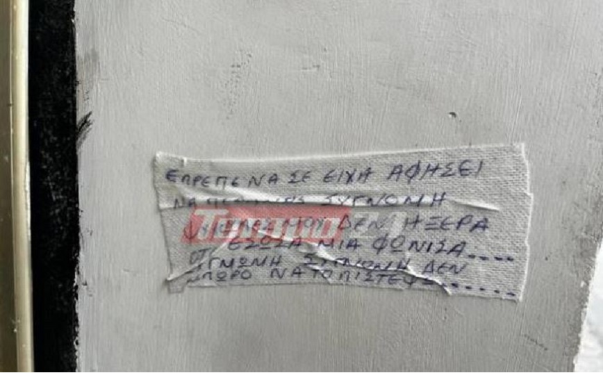 Ένα σημείωμα τοποθετήθηκε έξω από την οικία της Ρούλας Πισπιρίγκου στην Πάτρα και σύμφωνα με όσα γράφει, ο συντάκτης (ή η συντάκτρια) ζητάει συγγνώμη από τα τρία νεκρά παιδιά, γιατί έσωσε «μία φόνισσα».