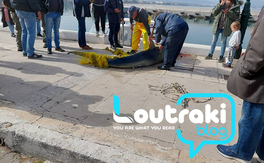 Ο ψαράς τον έσυρε με τη βάρκα του μέχρι το λιμάνι του Λουτρακίου, όπου έσπευσε αμέσως το Λιμενικό, ενώ με τη βοήθεια γερανού έβγαλαν το ψάρι στη στεριά αναφέρει το loutrakiblog.