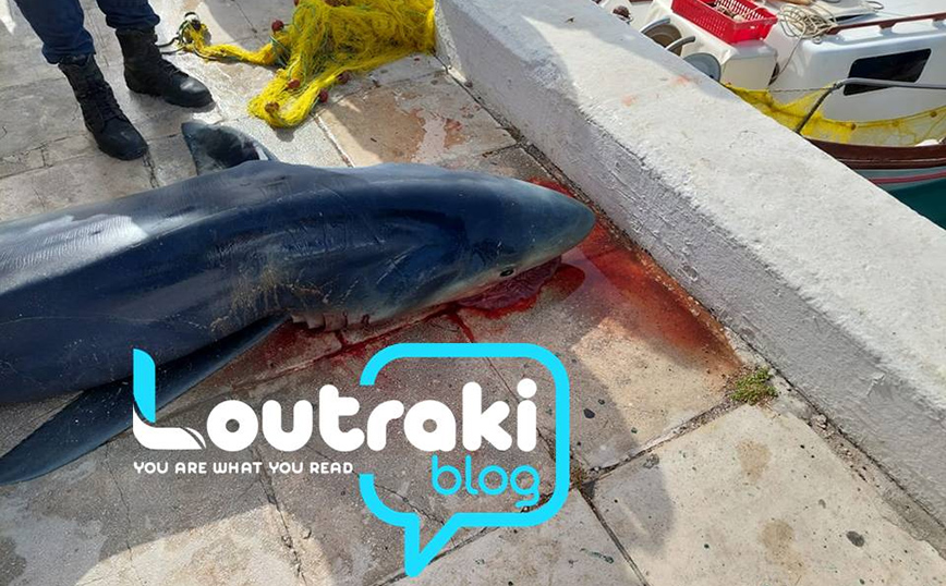 Ένα καρχαρία μήκους 4 μέτρων και βάρους ενός τόνου έπιασε ένας ψαράς στα ανοιχτά του Κορινθιακού Κόλπου και συγκεκριμένα κοντά στο Φάρο Μελαγκάβι, στο Λουτράκι.