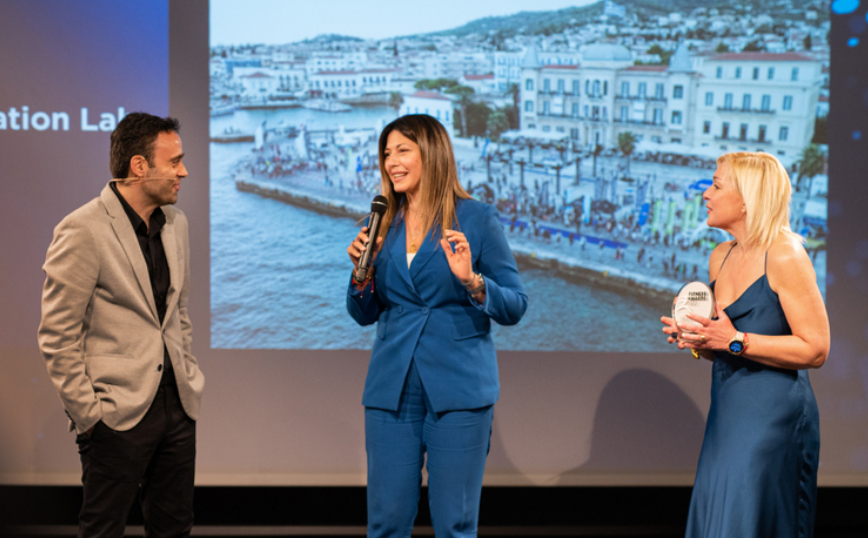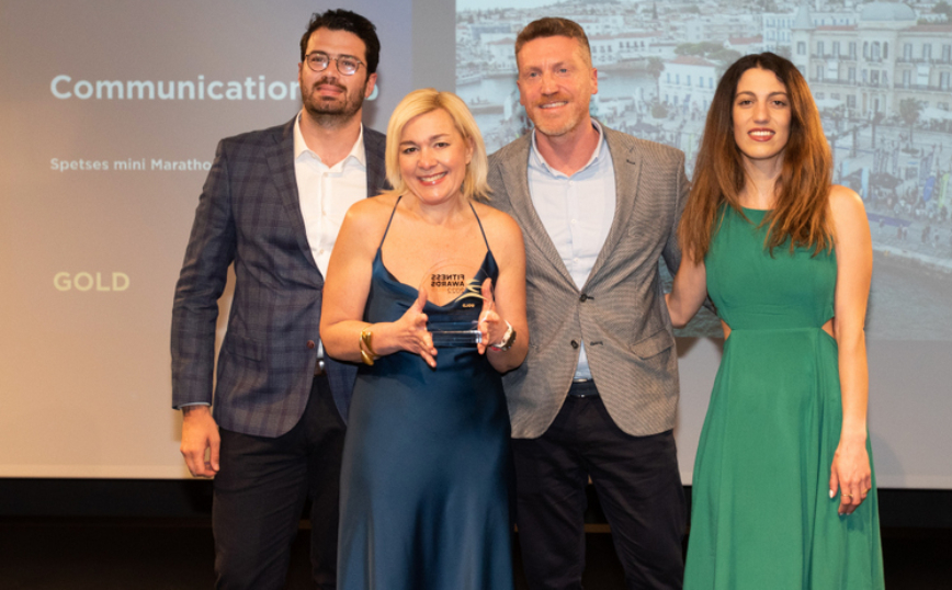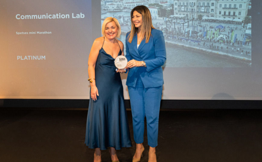 Highlight της βραδιάς αποτέλεσε η απονομή του platinum βραβείου, για το οποίο ανέβηκαν στη σκηνή και παρέλαβαν από κοινού, η κα Ζαχαράκη μαζί με την CEO Communication Lab & Πρόεδρο Spetses mini Marathon Μαρίνα- Λύδα Κουταρέλλη.