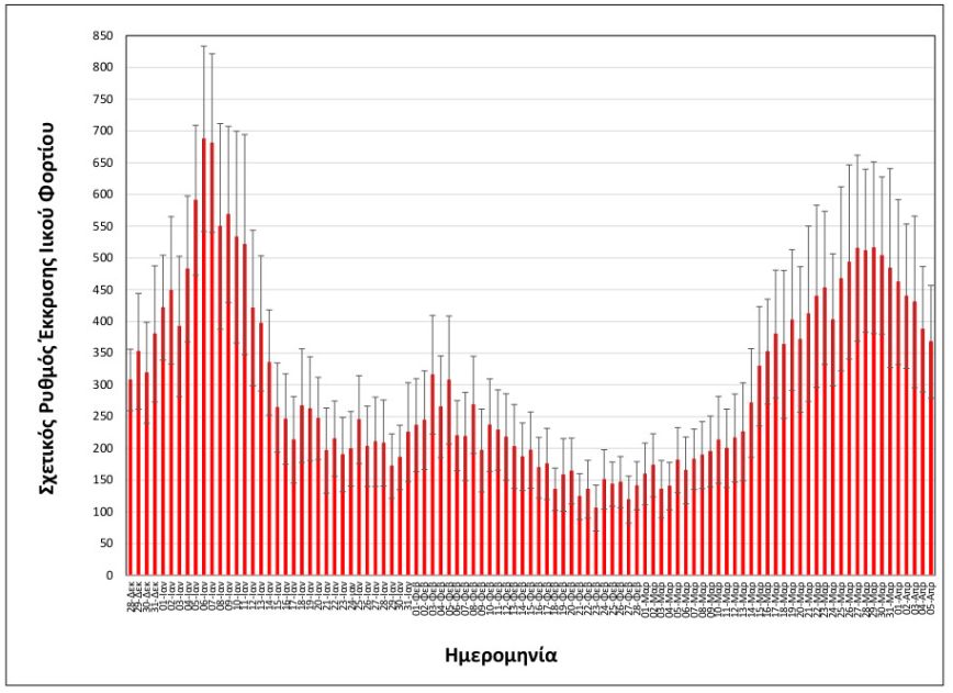 - Οριακά σταθερή (-13%) σε σχέση με τη μέση τιμή των δύο αμέσως προηγούμενων μετρήσεων του Σαββάτου 02/04/2022 και της Κυριακής 03/04/2022.