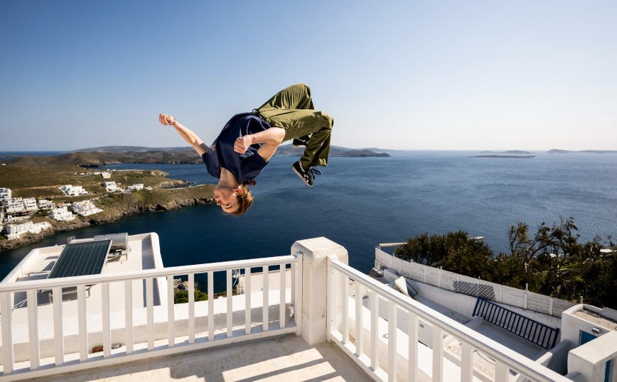 Η «πεταλούδα του Αιγαίου» για 4 ημέρες, από τις 9 μέχρι τις 12 Ιουνίου, θα μεταμορφωθεί σε μια μεγάλη freerunning πλατφόρμα με τα πιο όμορφα και γραφικά σημεία της Χώρας να μετατρέπονται σε ιδιαίτερες «πίστες». 16 από τους καλύτερους freerunners παγκοσμίως θα συναντηθούν στο νησί για να αγωνιστούν, αλλά κυρίως να γιορτάσουν το θεαματικό άθλημα του freerunning.