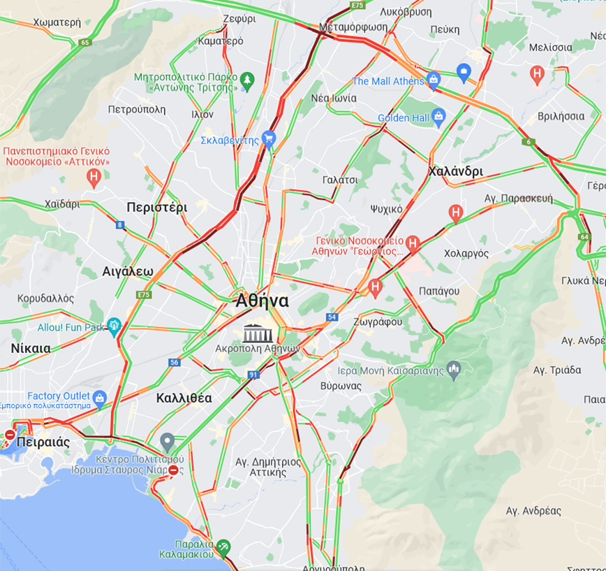 Δείτε τον χάρτη της Google με την κίνηση αυτή την ώρα (9:00):