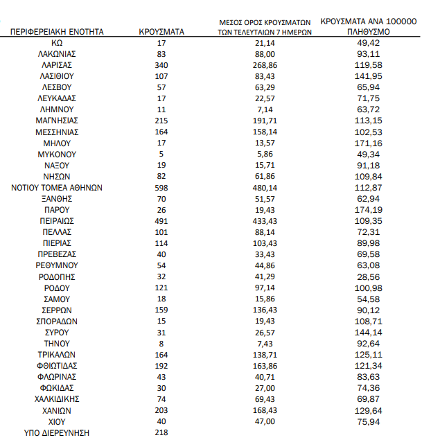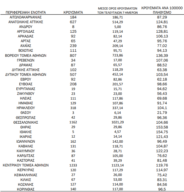 Ο ΕΟΔΥ ανακοίνωσε σήμερα (13/4) 11.293 νέα κρούσματα κορονοϊού, από τα οποία τα 232 αφορούν επαναλοιμώξεις. Τα περισσότερα καταγράφονται στην Αττική, με το λεκανοπέδιο να έχει 4.447 νέα περιστατικά COVID-19, ενώ η Θεσσαλονίκη είχε 1.162 νέα κρούσματα του ιού.