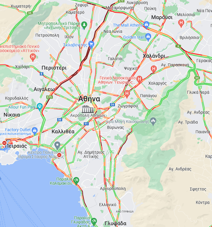 Σύμφωνα με την τροχαία Αττικής η κίνηση είναι αυξημένη στους εξής δρόμους:
