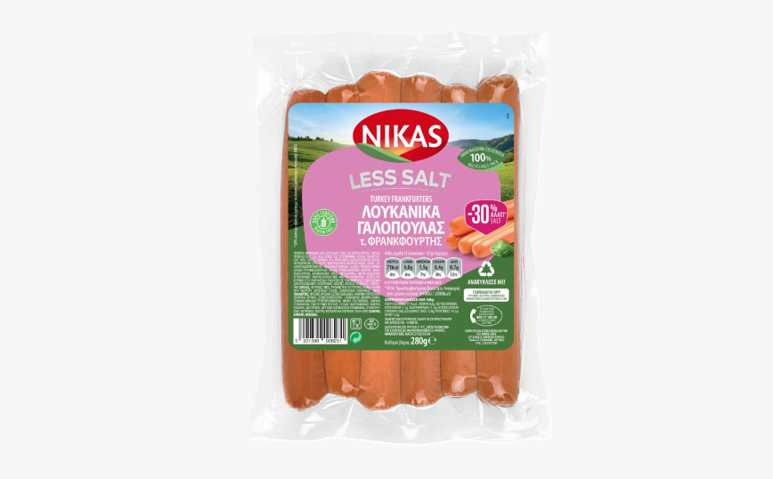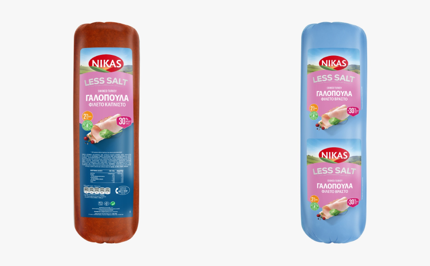 Τη σειρά εκλεκτών αλλαντικών από γαλοπούλα NIKAS LESS SALT με 30% λιγότερο αλάτι, χωρίς γλουτένη και με χαμηλά λιπαρά. Η νέα σειρά LESS SALT περιλαμβάνει γαλοπούλα καπνιστή, γαλοπούλα βραστή, γαλοπούλα βραστή οβάλ, γαλοπούλα βραστή 160gr και λουκάνικο γαλοπούλας τύπου Φρανκφούρτης 280gr.