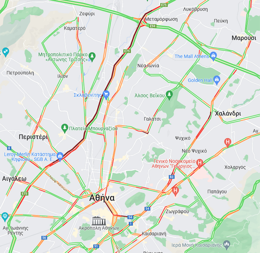 Μάλιστα έχει δημιουργηθεί μποτιλιάρισμα 9 χιλιομέτρων, από τη γέφυρα της Μεταμόρφωσης.