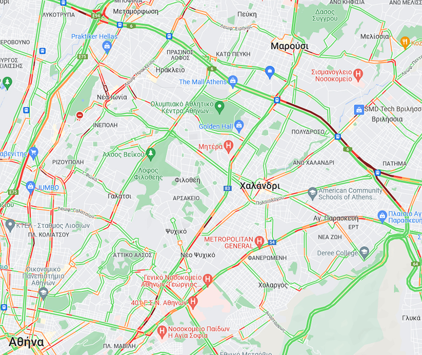 Ο χάρτης με την κίνηση στους δρόμους αυτή την ώρα…