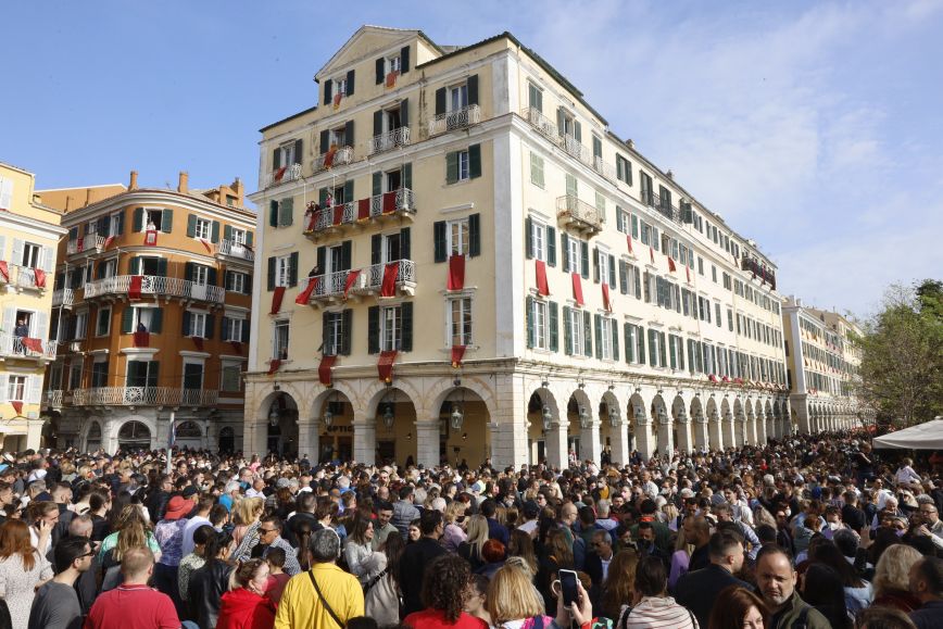 Θεαματική ήταν η πρώτη Ανάσταση στην Κέρκυρα, με χιλιάδες επισκέπτες και ντόπιους να γεμίζουν την πλατεία και τα καντούνια του νησιού για να αναβιώσουν το έθιμο των Μπότηδων, έπειτα από δύο χρόνια που ο κορονοϊός είχε ανατρέψει τα δεδομένα των προηγούμενων ετών.