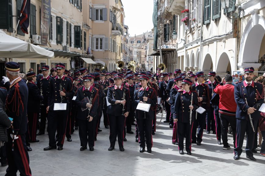 Αμέσως μετά το έθιμο, οι φιλαρμονικές με χαρούμενα εμβατήρια δίνουν στους δρόμους της πόλης τον πρώτο αναστάσιμο ρυθμό.