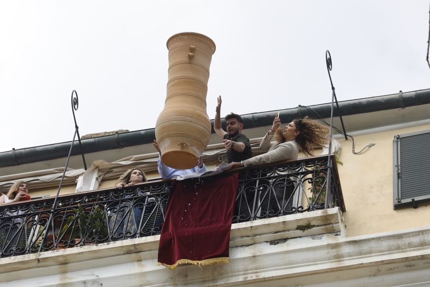 Το σύνθημα έδωσαν οι καμπάνες των εκκλησιών της πόλης, που άρχισαν στις 11:00 ακριβώς να χτυπούν χαρμόσυνα. Όλοι οι πιστοί έσπευσαν, όπως θέλει η παράδοση, να πάρουν ένα κομμάτι από τις σπασμένες στάμνες για γούρι και να το μεταφέρουν στο σπίτι τους.