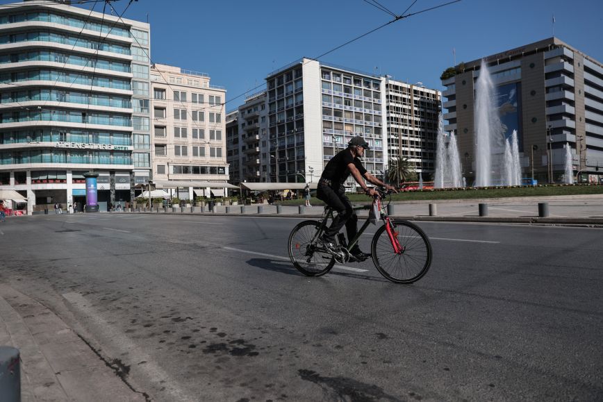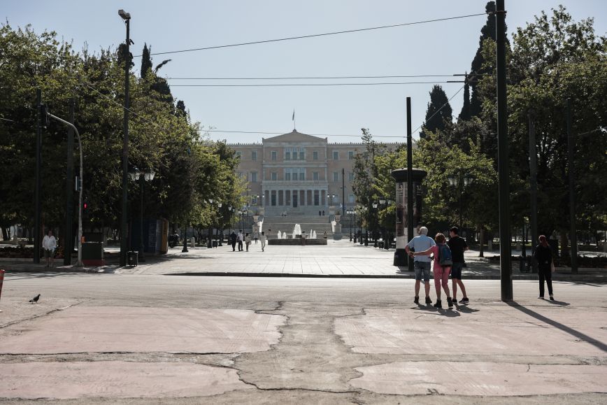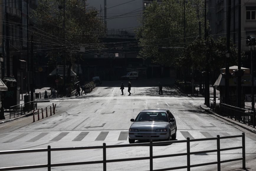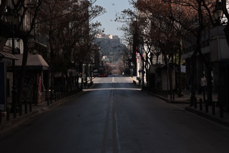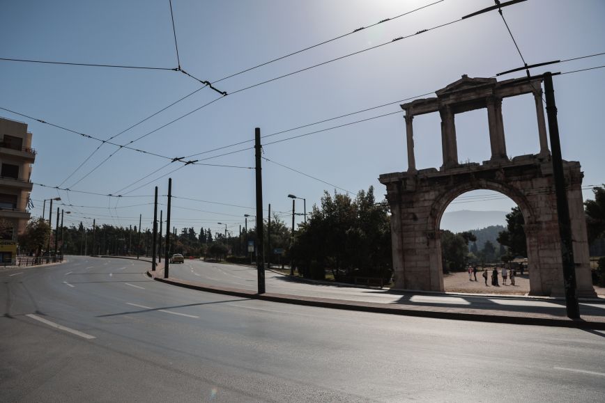H αίσθηση της μοναξιάς κυριαρχεί στο κέντρο της Αθήνας, με τους δρόμους να είναι άδεια λόγω της «μεγάλης εξόδου» των πολιτών, που επέλεξαν να περάσουν το Πάσχα στην επαρχία, για πρώτη φορά μετά τους περιορισμούς και τα lockdown λόγω κορονοϊού.