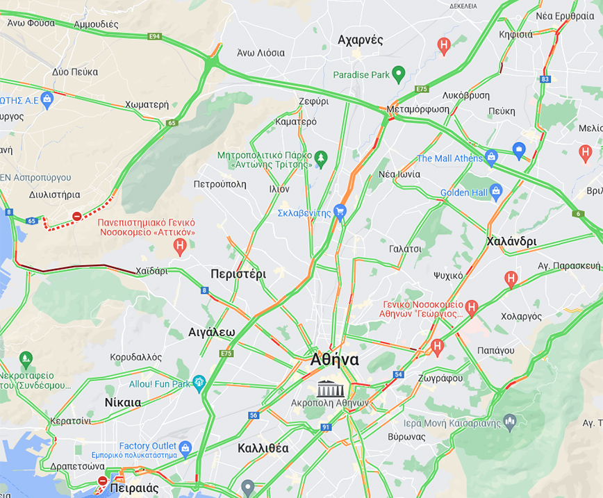 Αυτή την ώρα κίνηση καταγράφεται στην εθνική οδό Αθηνών – Κορίνθου στο ρεύμα εξόδου, από το Δαφνί έως και Σκαραμαγκά, ενώ αυξημένη είναι η κυκλοφορία και στα δύο ρεύματα της Αθηνών – Λαμίας.
