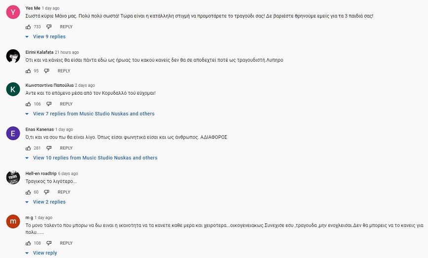 -«Σωστά κύριε Μάνο μας. Πολύ πολύ σωστά! Τώρα είναι η κατάλληλη στιγμή να προμοτάρετε το τραγούδι σας! Δε βαριέστε θρηνούμε εμείς για τα 3 παιδιά σας!»